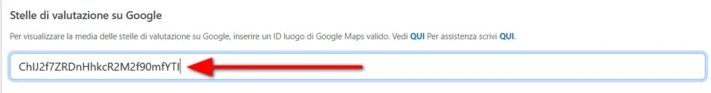 Quando modifichi un annuncio esistente o ne crei uno nuovo, durante la compilazione troverai la sezione “Stelle di valutazione su Google”. In questa sezione è presente un campo di testo in cui inserire l’ID luogo che hai copiato in precedenza.