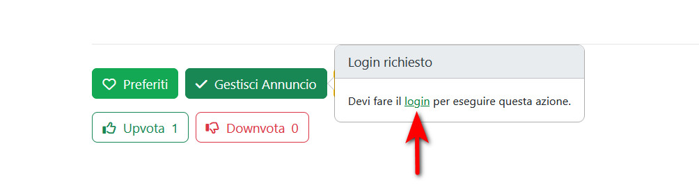 - Se non sei registrato o non hai effettuato l’accesso, ti verrà mostrato il link per il login, necessario per proseguire.